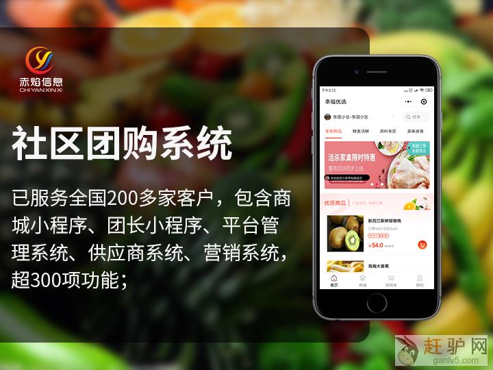 广州赤焰信息科技有限公司,专业的源头社区团购软件开发商,较早开发社区团购系统,目前全国合作的社区团购平台400+,覆盖20+行业,平台成交金额2000万+g+a+n+l+v+5+c+o+m。
